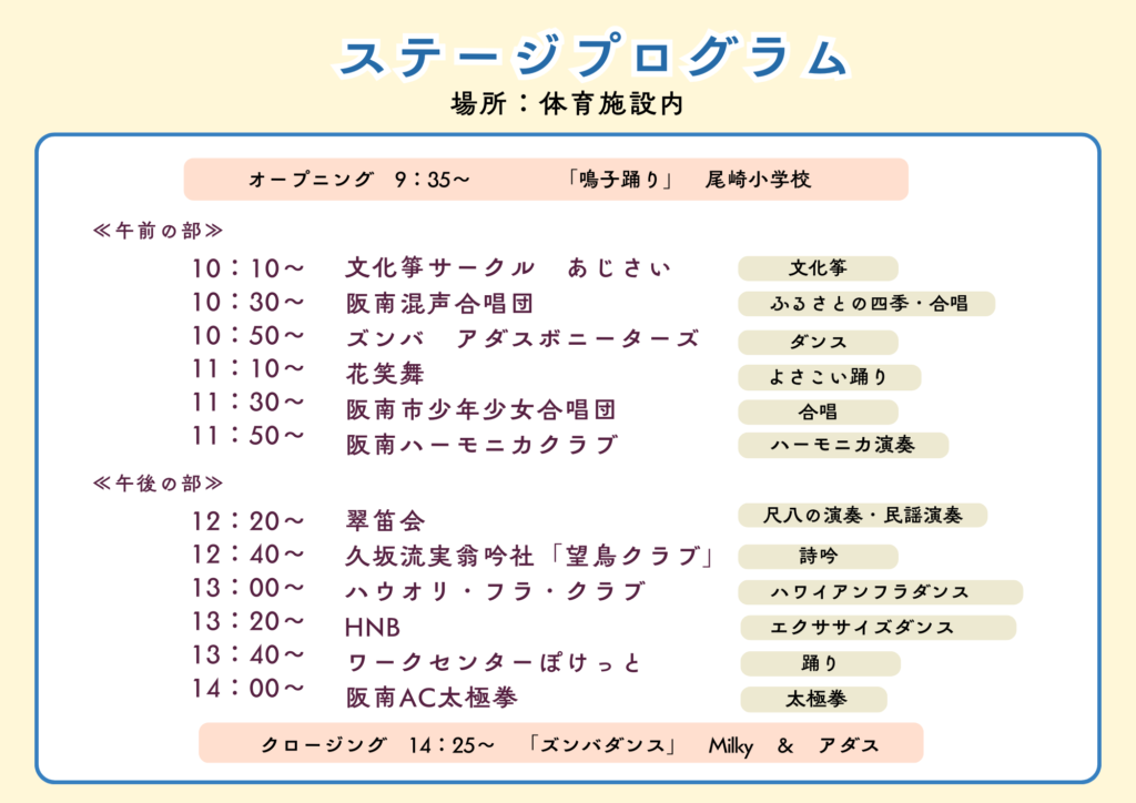 - 模擬店・ステージ・パネル展示・バザーや様々な体験コーナーが勢ぞろいします。