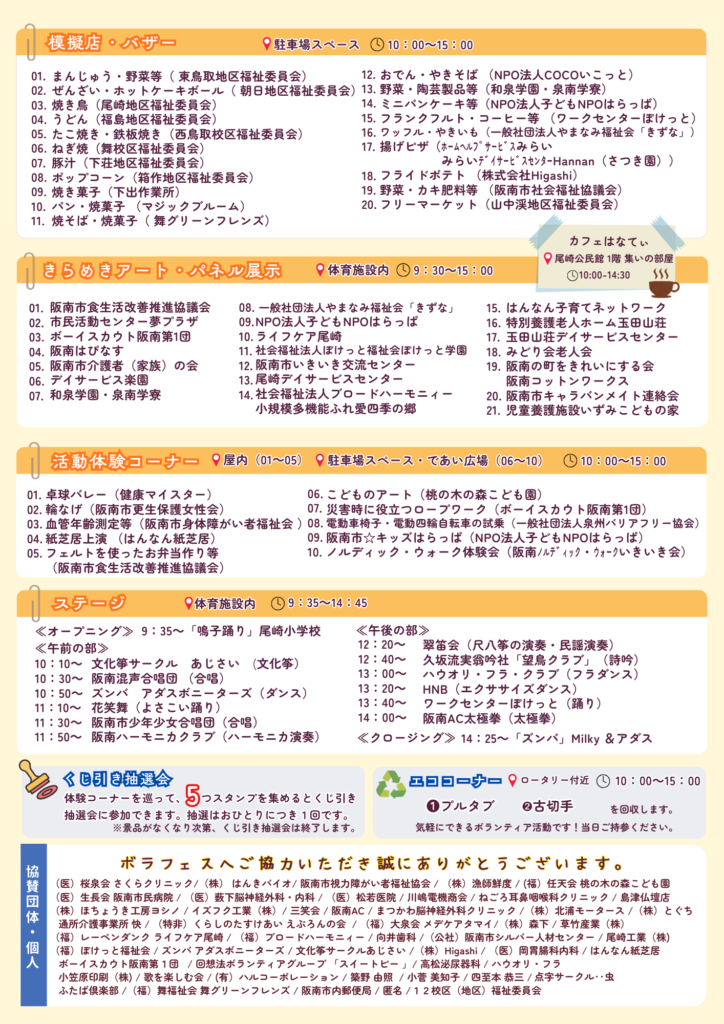 ※体験コーナー10か所のうち、5か所でスタンプを集めると、阪南ブランド14匠や作業所などの素敵な景品が当たります。
